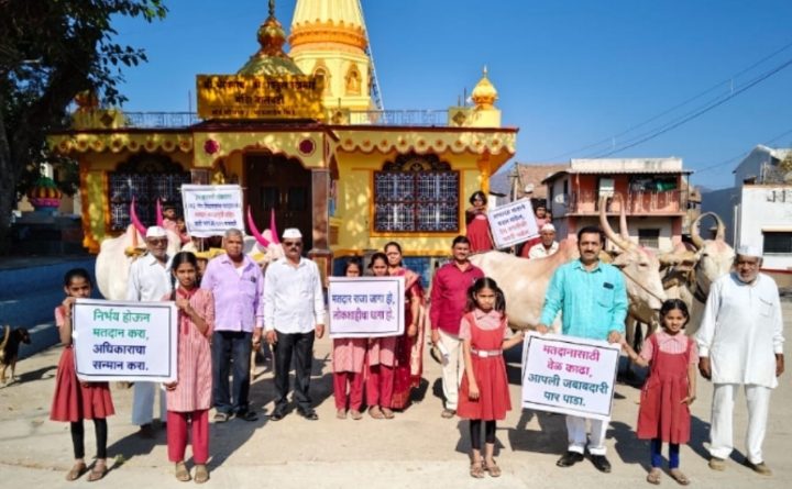 बालवडीत बैलगाडीतून मतदार जनजागृती मोहिम.