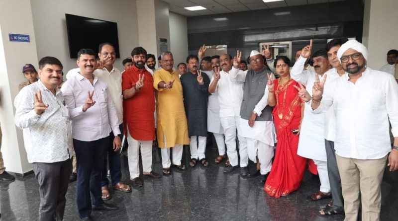 शिरुर लोकसभा महायुती उमेदवार आढळराव पाटील यांचा उमेदवारी अर्ज दाखल करताना जयघोष विजयाचा,आरंभ नव्या युगाचा.