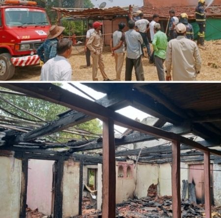 कुरुंगवडी ( ता. भोर ) येथील संदीप संपत शिळीमकर आणि धनाजी संपत शिळीमकर यांच्या कौलारू घराला शॉर्टसर्किट झाल्याने मोठ्या प्रमाणात आग लागली होती. संपूर्ण घर बेचिराख झाल्याने संसार उघड्यावर आला. ही घटना आज मंगळवार ( दि. ४ ) जून रोजी सकाळी साडेअकरा वाजण्याच्या सुमारास घडली आहे. अग्निशामक दलाचा बंब पोहोचल्यानंतर आग आटोक्यात आणली. मात्र तोपर्यंत घराची अक्षरश: राख झाली होती.