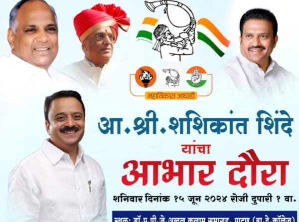 नुकत्याच पार पडलेल्या लोकसभा निवडणुकीच्या अनुषंगाने पाटण विधानसभा मतदारसंघातील महाविकास आघाडीचा मेळावा शनिवार दि.१५ जून २०२४ रोजी पाटण येथील डॉ.ए.पी.जे.अब्दुल कलाम सभागृह(बा.दे.कॉलेज) येथे पार पडणार आहे. यावेळी आ.शशिकांत शिंदे, आ.बाळासाहे पाटील, पक्षाचे जेष्ठ नेते विक्रमसिंह पाटणकर, श्रमिक मुक्ती दलाचे अध्यक्ष डॉ.भारत पाटणकर, सातारा जिल्हा मध्यवर्ती सहकारी बँकेचे संचालक सत्यजित सिंह पाटणकर, सातारा जिल्हा राष्ट्रवादी काँग्रेस पार्टी-शरदचंद्र पवार अध्यक्ष सुनील माने, उध्दव बाळासाहेब ठाकरे शिवसेना जिल्हा अध्यक्ष हर्षद उर्फ भानुप्रताप कदम, राष्ट्रीय कॉंग्रेसचे प्रांतिक प्रतिनिधी हिंदुराव पाटील व महाविकास आघाडीतील मित्र पक्षांचे प्रमुख पदाधिकारी उपस्थित राहणार आहेत अशी माहिती पाटण तालुका राष्ट्रवादी काँग्रेस पार्टी-शरदचंद्र पवार चे अध्यक्ष राजाभाऊ शेलार यांनी प्रसिद्धी पत्रकाद्वारे दिली. या मेळाव्यामध्ये लोकसभा निवडणुकीत आलेल्या अपयशाची कारणमिमांसा करण्यात येणार आहे, त्याचबरोबर आगामी निवडणुकांच्या पार्श्वभूमीवर चर्चा करण्यात येणार आहे. तरी राष्ट्रवादी काँग्रेस पार्टी-शरदचंद्र पवार पक्ष, राष्ट्रीय कॉंग्रेस, उद्धव बाळासाहेब ठाकरे शिवसेना, शेतकरी कामगार पक्ष आणि महाविकास आघाडीतील घटक मित्र पक्षांच्या सर्व पदाधिकारी व कार्यकर्त्यांनी यावेळी उपस्थित रहावे अशी विनंती शेलार यांनी प्रसिद्धी पत्रकात शेवटी केली आहे.