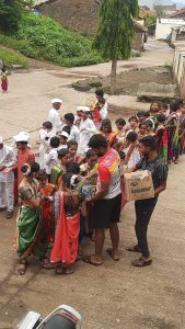 यावेळी गावात तरुण मंडळाकडून बाल वारकऱ्यांसाठी खाऊ वाटप करण्यात आले.