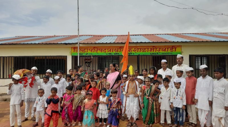 वारकऱ्यांच्या वेशभूषा तील लहान मुले, पालखी मिरवणूक आणि विठू नामाचा गजर अशा वातावरणात जिल्हा परिषद शाळा मोरवाडी यांचा विठू माऊलीचा दिंडी सोहळा मोरवाडी गावात रंगला.