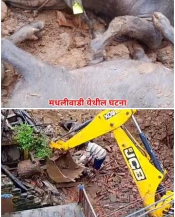 मातीच्या ढिगार्याखाली गाडली गेली जनावरे मधली वाडी येथील घटना