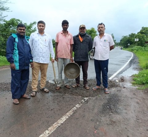 ग्रामस्थांनीच बुजवले श्रमदानातून राजापूर रस्त्यावरील खड्डे