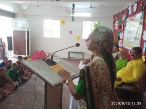 या कार्यक्रमामध्ये विद्यार्थ्यांनी नीलिमा ताईच्या छान छान कविता सादर केल्या. यामध्ये ‘गाडी गाडी’, मी होईन मोबाईल ‘या बालकविता व लेखिका अरुणा ढेरे यांनी लिहिलेल्या नाटकाची छोटीशी नाट्यछटा सादर करण्यात आली.या सर्व कार्यक्रमाचे उत्तम सादरीकरण करण्यात आले.