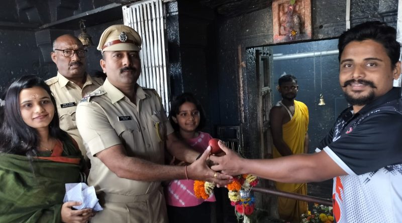 सातारा तालुका पोलीस निरीक्षक निलेश तांबे यांनी सहपत्नीक कोटेश्वर महादेवाचे घेतले दर्शन.