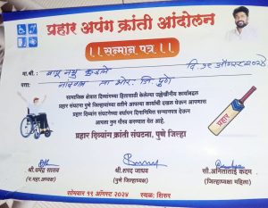 तसेच अपंग क्रांती संघटनेचे शारीरिक व्यंग असलेले सदस्य यांचादेखील मानसन्मान करण्यात आला.