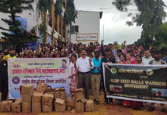 प्रश्न फाउंडेशन आणि आमदार शशिकांत शिंदे महाविद्यालय मेढा ह्यांच्या संयुक्त विद्यमाने ने झाले १५००० बीज गोळ्यांचे निसर्ग दान.