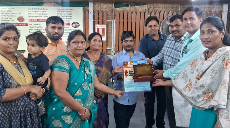 लोकशाही पञकार संघ महाराष्ट्र भटक्या विमुक्त जाती जमाती आदिवासी आध्यक्ष पत्रकार सुनिल (सुज्ञान )ज्ञानदेव भोसले यांना आदर्श पत्रकार पुरष्कार प्राप्त डॉ.प्राध्यापक संघर्ष सावळे यांच्या हस्ते दिला.