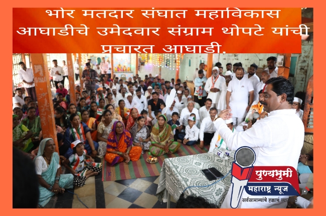 भोर विधानसभा मतदारसंघाचे महाविकास आघाडी व मित्र पक्षाचे अधिकृत उमेदवार आमदार संग्राम थोपटे यांनी भोर तालुक्यातील इंगवली, आळंदे, कासुर्डी, तेलवडी, मोहरी, हातवे, तांभाड, दीडघर, पारवडी, सोनवडी, गो-हेपडळ, सांगवी, कुरुंगवडी, कोळवडी, जांभळी या गावातील मतदार बंधू-भगिनीं यांच्या सोबत गाव भेट दौरा निमित्त भेट घेऊन सवांद साधला.
