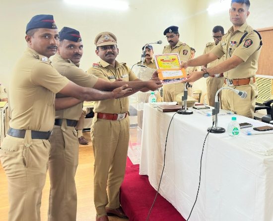 संभाजी पुरीगोसावी (सातारा जिल्हा) प्रतिनिधी. सातारा जिल्हा पोलीस दलातील उंब्रज पोलीस ठाणे हे बेस्ट पोलीस ठाणे ठरले आहे, कायदा व सुव्यवस्था अबाधित राखण्यासाठी पोलीस ठाणेचे प्रभारी अधिकाऱ्यांसह पोलीस ठाणेतील कर्मचारी देखील नेहमीच प्रयत्नशील आहेत, सातारा जिल्हा पोलीस दलाकडून प्रत्येक पोलीस ठाणेच्या कामगिरीचा आढावा घेवुन चांगली कामगिरी असणाऱ्या पोलीस ठाणेला प्रशस्तीक पत्रक देवुन त्यांचे मनोबल उंचावले जाते, उंब्रज पोलीस ठाण्याचे प्रभारी अधिकारी रवींद्र भोरे पो.हवा. संजय धुमाळ पो. हवा. टी.एच. कर्वेकर पो.हवा. पी.आर पाटील, राजू कोळी यांचा प्रशस्तीकपत्रक देवुन जिल्हा पोलीस अधीक्षक समीर शेख अप्पर पोलीस अधीक्षक डॉ. वैशाली कडुकर यांच्याहस्ते सन्मान करण्यात आला,