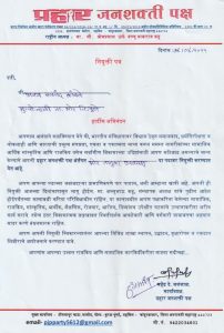 दि. 14 पुणे :- मा. बच्चूभाऊ कडू, संस्थापक अध्यक्ष, प्रहार जनशक्ती पक्ष महाराष्ट्र राज्य यांच्या आदेशानुसार, I.B. गेस्ट हाऊस, पुणे येथे पक्षाच्या जिल्हा व तालुका कार्यकारिणीची निवड पार पडली. या महत्त्वपूर्ण बैठकीस राज्य समन्वयक गौरव जाधव उपस्थित होते.
