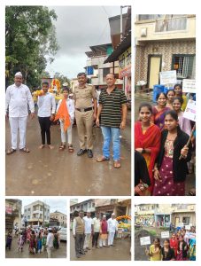 व्यसनमुक्ती, आरोग्य व रस्ता सुरक्षा – प्रहारी गटामार्फत नारे व घोषणांद्वारे जनतेला सकारात्मक संदेश देण्यात आले.