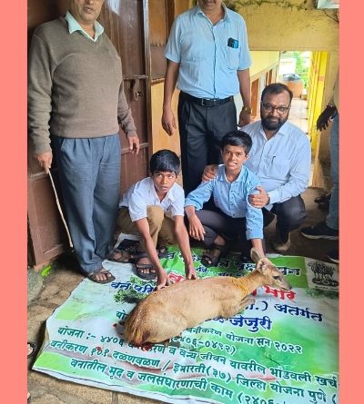 दि. 31 कापूरहोळ(ता. भोर) – आदर्श माध्यमिक विद्यालयातील विद्यार्थ्यांनी दाखवलेल्या प्रसंगावधानामुळे एका जखमी भेकर जातीच्या हरणाचे प्राण वाचले. डोंगर उतारावर भटक्या कुत्र्यांच्या हल्ल्यात जखमी झालेल्या या हरणाला वाचवण्यासाठी विद्यार्थ्यांसह शिक्षकांनी घेतलेली तात्काळ कृती कौतुकास्पद ठरली आहे.