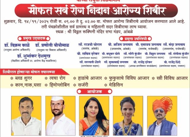 मोफत आरोग्य शिबिराचे आयोजन – आंबळे येथे १४ नोव्हेंबर रोजी सर्वांसाठी मोफत तपासण्या