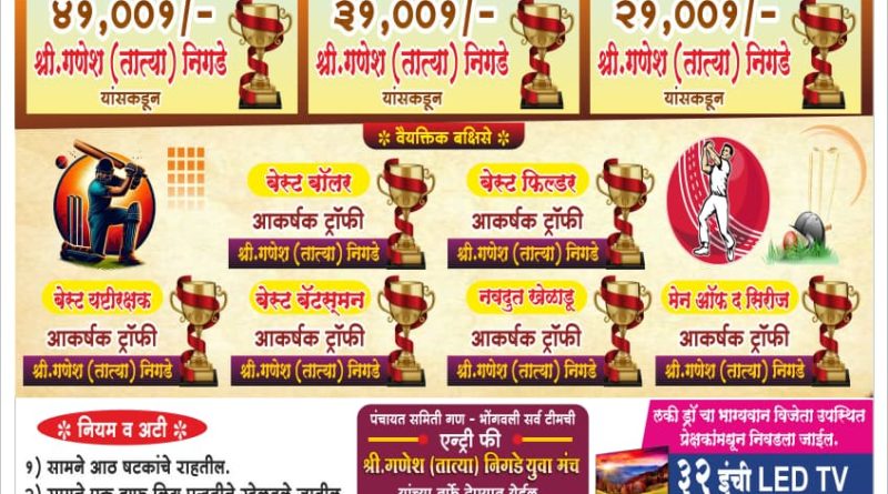 तरुणाईचा उत्साह, खेळाची शिस्त आणि भव्य आयोजन यामुळे गणेश तात्या युवा चषक २०२५ ही स्पर्धा भोर तालुक्यातील एक लक्षवेधी क्रिकेट महोत्सव ठरणार आहे.